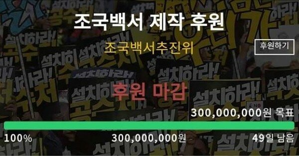 조국백서추진위원회는 지난 9일 후원금 모금 사이트를 개설하고, 유튜브 <다스뵈이다> 녹화 현장에서 비공식적으로 모금 사실을 알린 뒤 1월 10일 공식적으로 모금을 시작했다.
