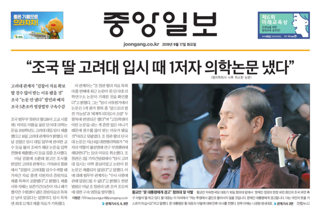 | ▲ 2019년 9월 17일 중앙일보 보도 |