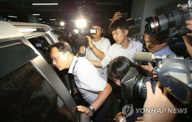 | ▲ 검찰 관계자들이 서울 성북구 안암동 고려대학교 인재발굴처에서 직원 통로로 나와 차량에 타고 있다. 2019.8.27/연합뉴스 |