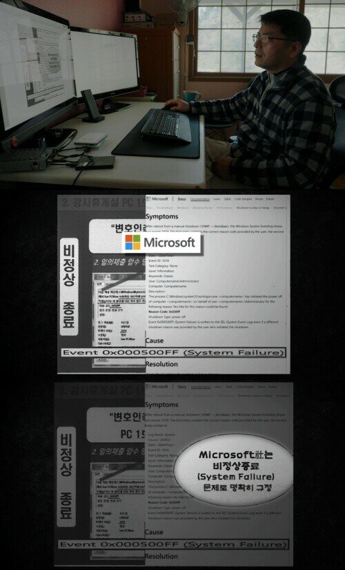 이에 대해 검찰은 MS 사용자 FAQ 페이지에서 1호 PC에 기록된 시스템 이벤트 로그(System Evnet Log) 중 에 대해 설명한 문서를 인용해 그 문서에서 “System Failure”라고 표기된 부분을 강조하면서 이를 “Microsoft社는 비정상종료(System Failure)) 문제로 명확히 규정”이라며 주장했다.