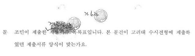 조 전 장관이 제시한 참고인 조서의 일부를 보면 원문에는 "조○이 제출한 제출서류 목록표입니다"라고 되어 있으나 여기에 "조○이 제출한 (것으로 보이는) 제출서류 목록표입니다"로 "것으로 보이는" 6글자를 첨자하고 도장과 무인(拇印)이 날인된 것을 볼 수 있다. 이는 조사 당시에는 "조O이 제출한 제출서류 목록표"라며 이에 대한 답변을 받은 후 조사 종료 후 수정한 것이다.