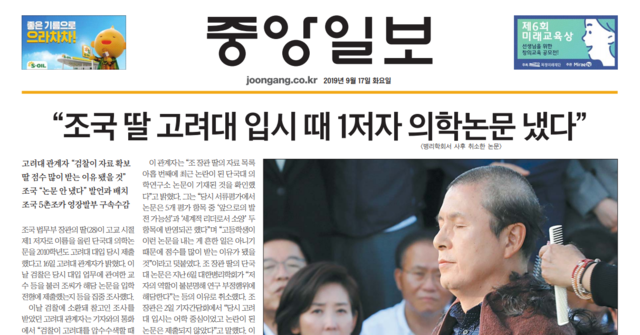 이에 따라 지 교수는 조사 후 전화를 걸어온 중앙일보 이병준 기자에게 “검찰이 고려대를 압수수색할 때 가져간 자료 중엔 지원자의 증빙자료 제출 목록이 포함됐고, 조 장관 딸의 자료 목록 아홉 번째에 최근 논란이 된 단국대 의학연구소 논문이 기재된 것을 확인했다”고 말했고, 중앙일보는 9월 17일자 1면에 <"조국 딸 고려대 입시 때 1저자 의학논문 냈다">는 기사를 게재했다.