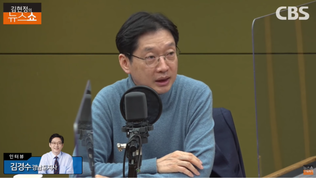 | ▲ 김경수 경남지사가 2월 24일 CBS 김현정의 뉴스쇼에 출연해 질문에 답하고 있다./CBS 유튜브 캡처 |