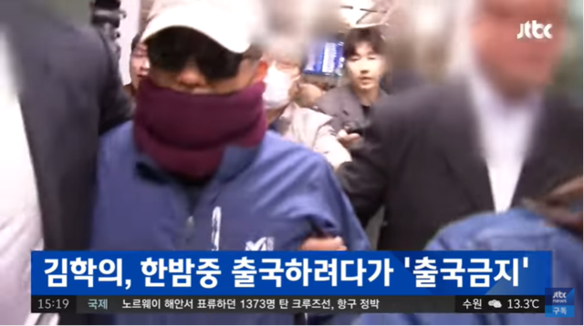 | ▲ 2019년 3월 23일 몰래 출국하려다 제지당하고 있는 김학의 전 법무차관/jtbc 화면 캡처 |