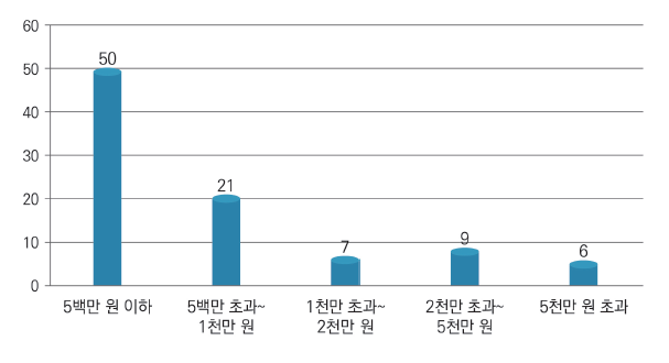 | ▲ 언론 관련 재판 손해배상 인용액 분포/<2019년 언론관련판결 분석보고서, 언론중재위원회> |