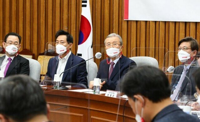 | ▲ 국민의힘 김종인 비상대책위원장이 8일 국회에서 열린 서울·부산시장 후보 및 시·도당위원장 연석회의에서 인사말을 하고 있다. |