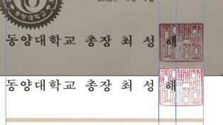 4. 워드 문서에 삽입된 전체 캡처 파일 중 하단부의 “동양대학교 총장 최성해 (직인) 부분을 캡처한다.