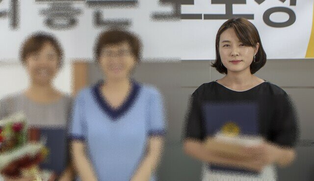 | ▲ 2018년 7월 27일 민언련 '이달의 좋은 보도상'을 수상하고 있는 경향신문 유설희 기자/민언련 홈페이지 |