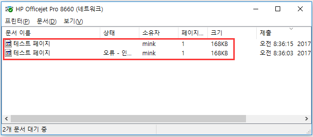 | ▲ 인쇄 오류시 나타나는 스풀링 화면 |