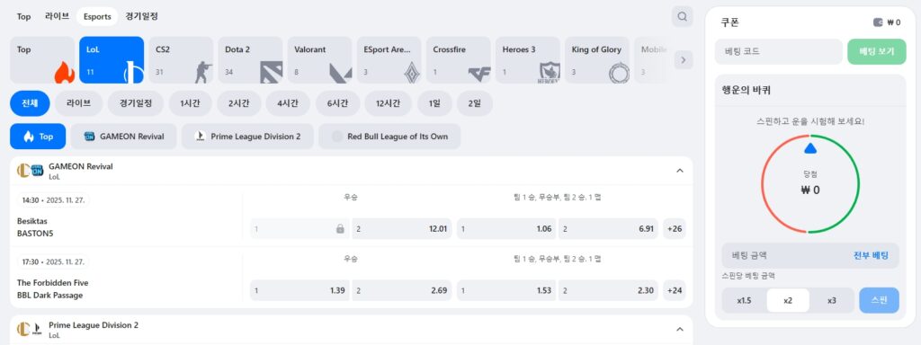 - 🎮 폭넓은 e스포츠 베팅 기회